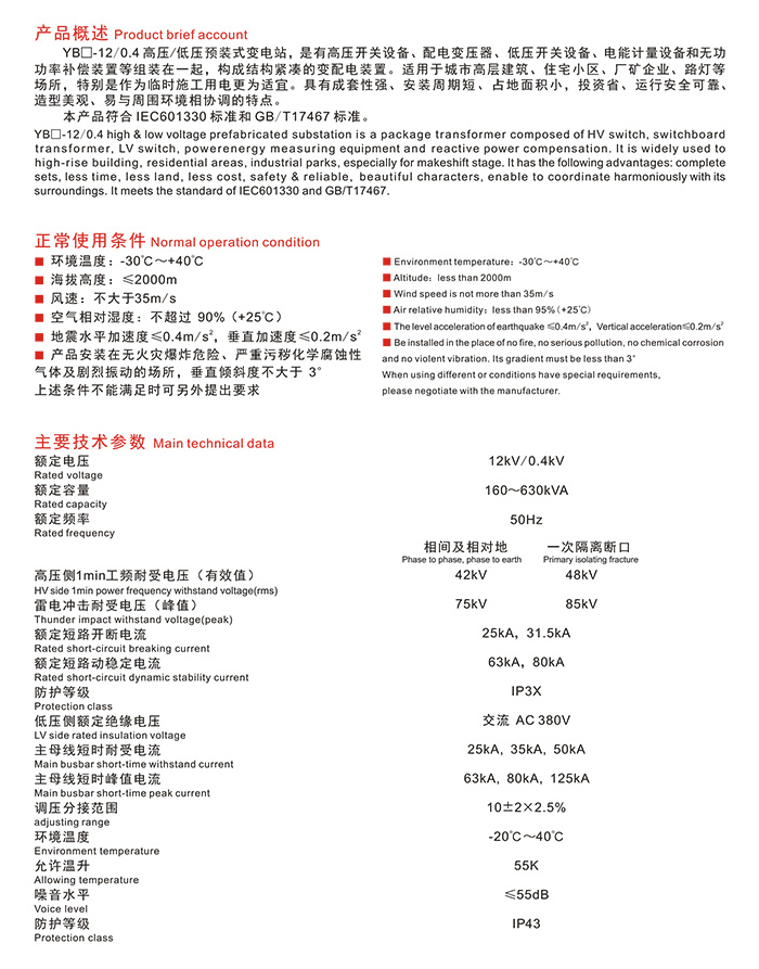 YBW-12/0.4高壓/低壓預(yù)裝式變電站(歐式箱變)