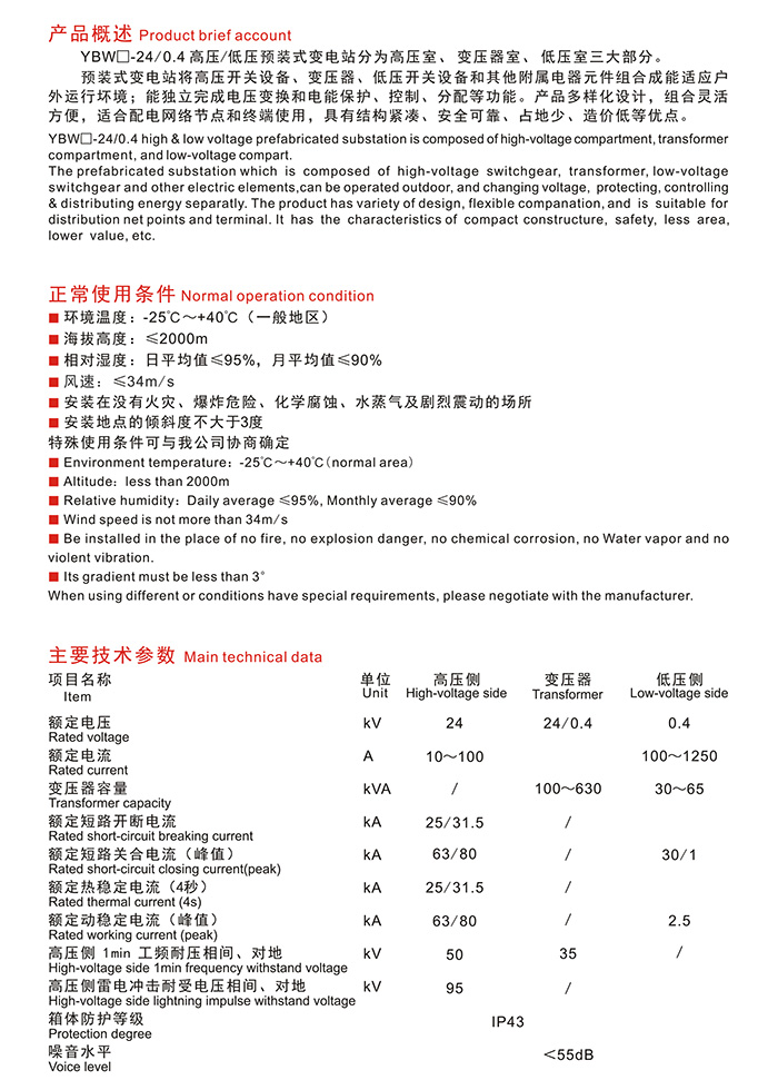YBW-24/0.4高壓/低壓預(yù)裝式變電站