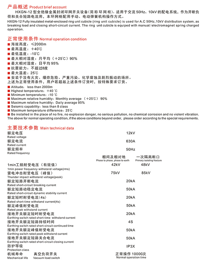 HXGN-12型全絕緣金屬封閉環(huán)網開關設備