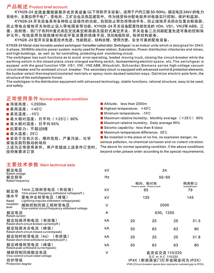 KYN28-24交流金屬鎧裝移開(kāi)式開(kāi)關(guān)設(shè)備